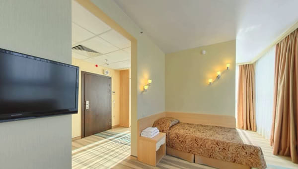 В однокомнатном номере имеются односпальная кровать и диван для проживания одного гостя. Площадь помещения составляет 25 кв.м.