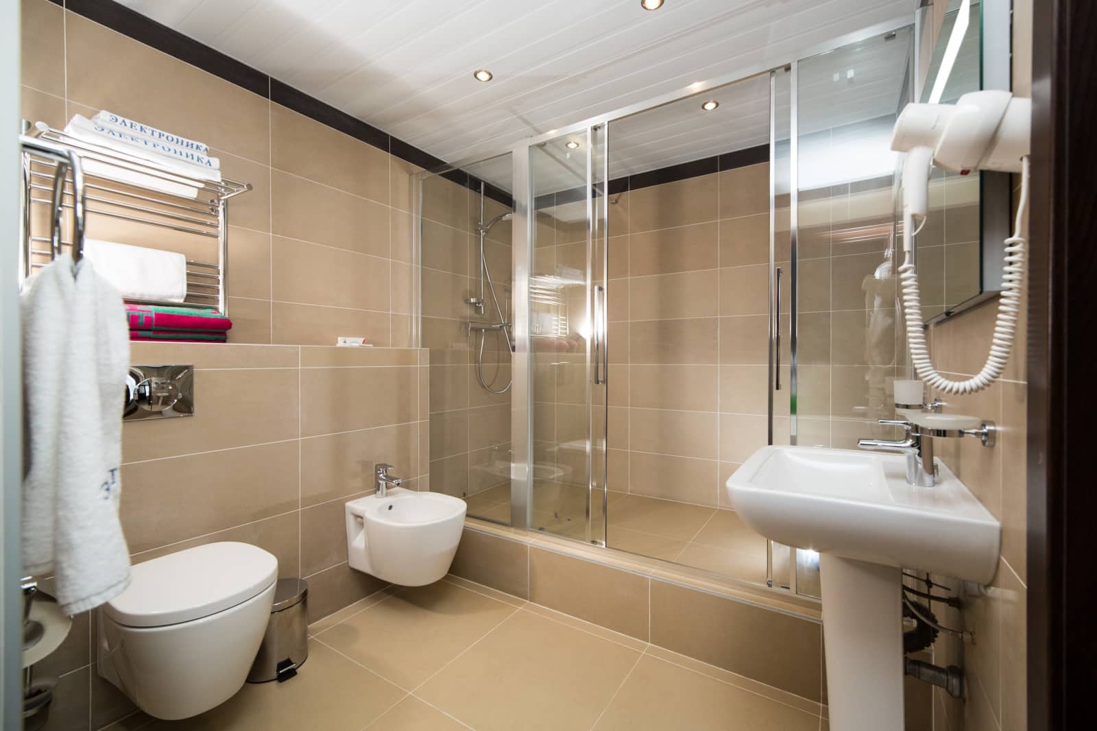 В вашем пользовании будет комплект посуды, сервиз на 6 персон и фригобар. Имеются халаты, тапочки, средства гигиены, фен и полотенца.